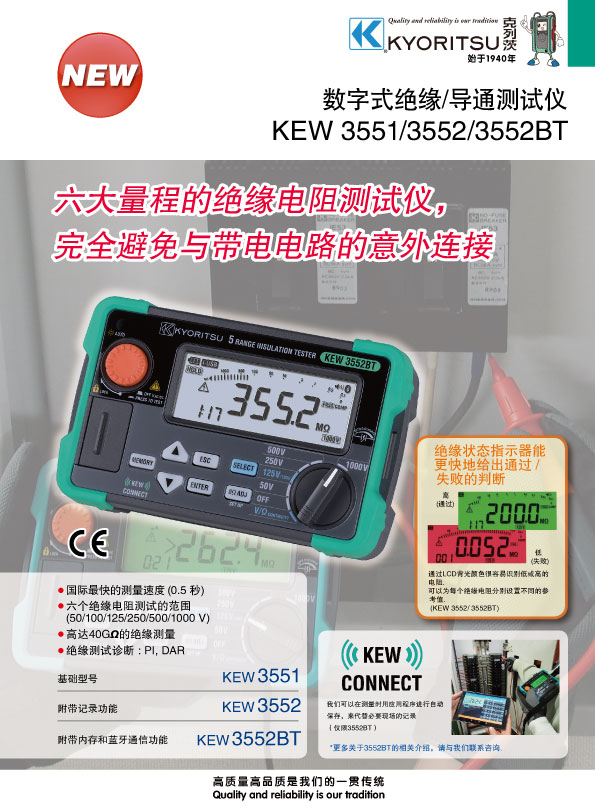 KEW3551/3552/3552BT 数字式绝缘/导通测试仪上市通知